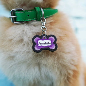 Classic Mine es una placa de identificación inspirada en la belleza de las gemas preciosas. Formando parte de la colección Connect, esta placa presenta una forma de hueso que combina a la perfección con su diseño audaz y vibrante.