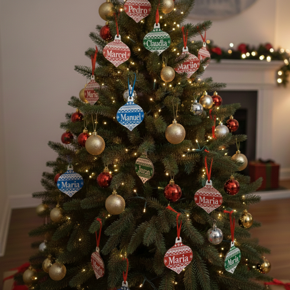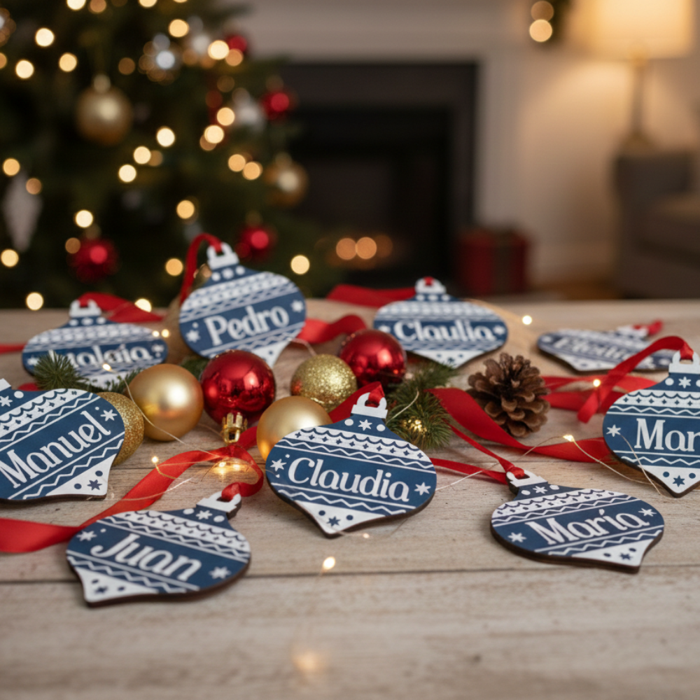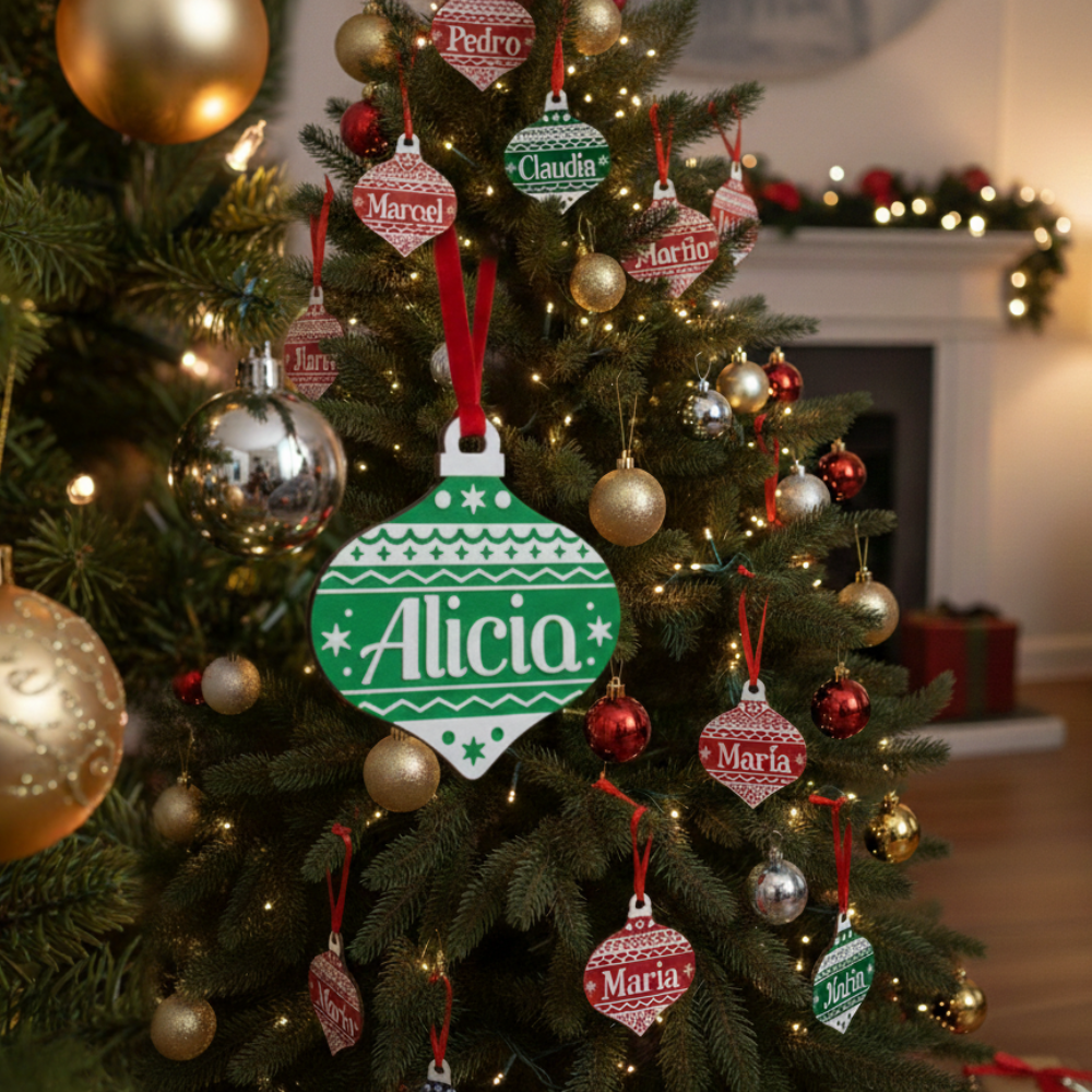Estrella navideña personalizada (Nombre), hecha en PLA. Incluye un imán trasero para colocarla en superficies metálicas y está diseñada para decorar tu pino con los nombres de cada integrante de la familia. Ideal para crear una Navidad más cálida, única y especial.