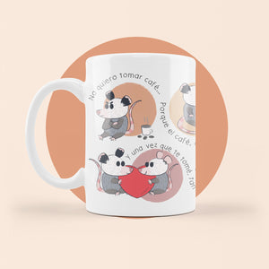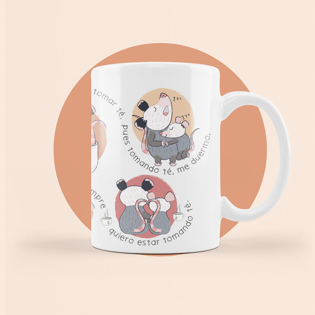 Sorprende a tu pareja con un detalle único: una taza ilustrada que revive un fragmento de la canción Tomando té de Chava Flores, interpretada a través de encantadores tlacuaches 🐀💞 que narran la historia con trazos llenos de carácter y personalidad.