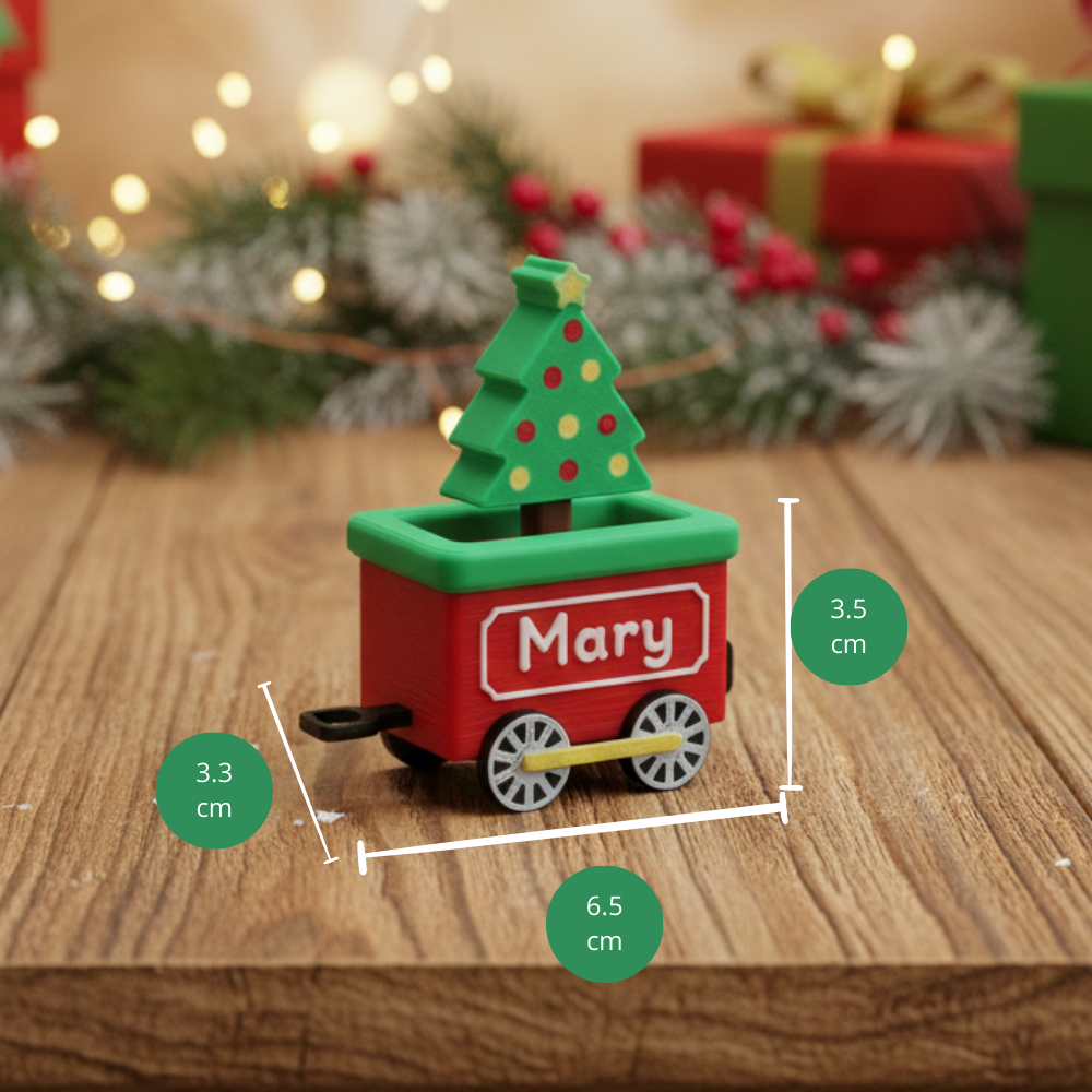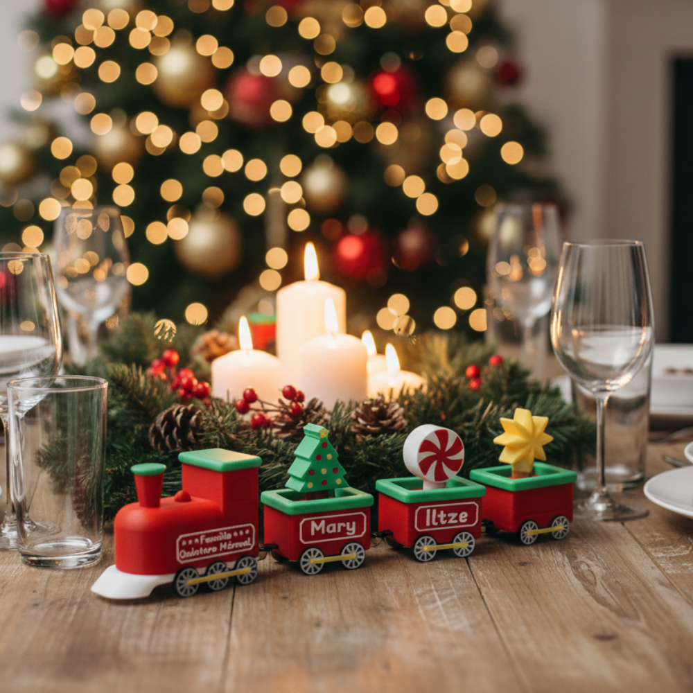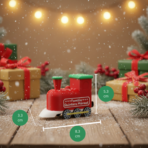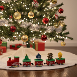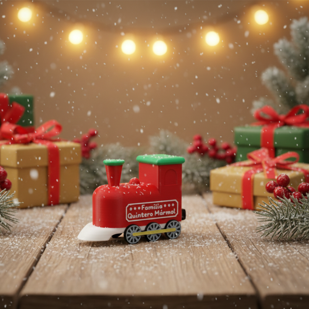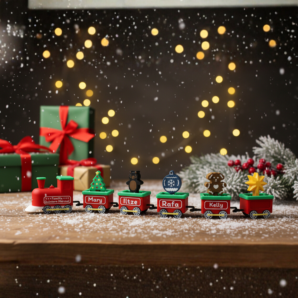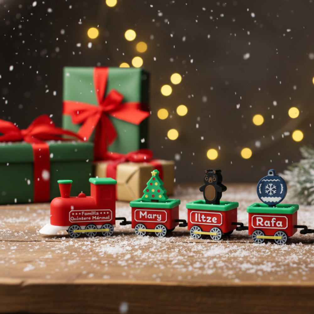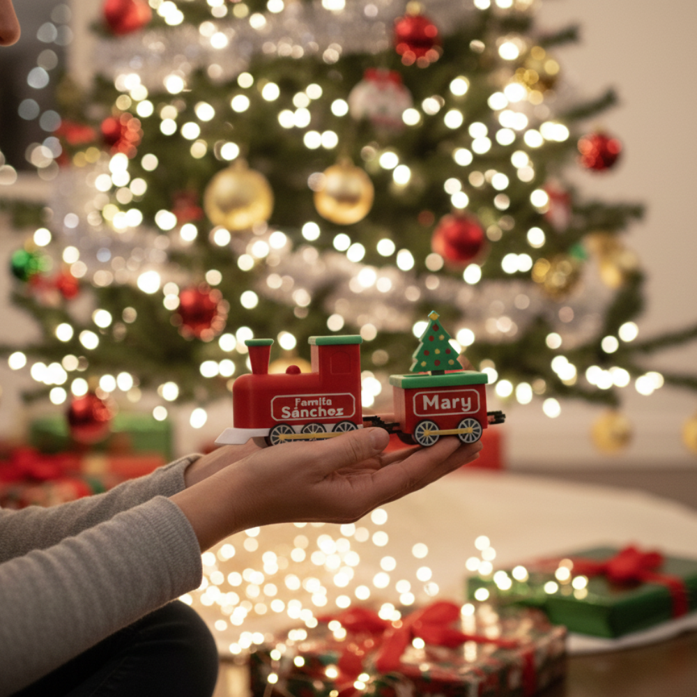 Celebra la magia de la Navidad con un detalle único y lleno de significado. El Tren Familiar Navideño Tomatoe está diseñado para personalizarse con el nombre de tu familia en la locomotora y con el nombre de cada integrante —incluyendo mascotas— en sus vagones, creando una pieza decorativa que se convierte en tradición año con año.